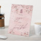 Fleur de pêcher orientale / fleur de prunier, fleurs printanières de teintes roses avec un symbole de double bonheur en calligraphie sur un fond aquarelle doux, panneau de mariage chinois 'veuillez signer notre livre d'or'.