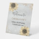 Un arrière - plan faux argenté décoré de faux or et d'argent parties scintillant, sprkles et tournesols. Personnalisez et ajoutez un nom et un âge/événement. Lettres noires et dorées.