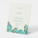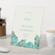 Symbole de Mariage Faveurs Piédestal avec fleurs turquoises de couleur avec des rayures de feuille dorée et de rouille. Beau mariage artistique fleuri favorise le signe du piédestal. Vintage aquarelle Mariage Faveurs Pedestal Signal. Turquoise et Golden Collection.