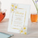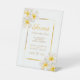Merci à vos invités d'être venus à votre mariage cette simple plumeria tropicale frangipani fleurs dans un cadre d'effet doré prendre un signe de faveur. Personnalisez avec vos propres noms de mariage, date et faveur, et message de remerciement. D'autres articles correspondants sont disponibles. Peinture et design originaux à la main en aquarelle par www.mylittleedenweddings.com
