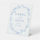 This elegant cards and gifts self standing sign features blue and white wildflower florals with a timeless French toile design. Inspired by Hampton style decor, vintage Victorian florals, and refined chinoiserie details, this floral sign adds a polished touch to your bridal shower gift table. A beautiful and functional accent for an elegant bridal shower with classic charm.