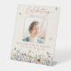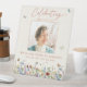 Il s'agit d'une célébration élégante et moderne du signe funéraire du mémorial de la vie. Le design comprend une belle police calligraphie et de beaux fleurs sauvages en rose pastel, violet, bleu, jaunes et rouille ou en terre cuite et aussi des papillons délicats floutants. Ce guéridon peut être facilement personnalisé avec votre propre photo pour créer un hommage spécial pour votre proche en utilisant le modèle fourni. Veuillez contacter le concepteur pour toute question concernant ce design ou pour tout produit correspondant.