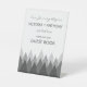 Ce panneau de piédestal est parfait pour tout couple qui planifie une fête mariage rustique dans les bois. Le design présente une gamme de forêts ombragées dans les tons gris sur un arrière - plan blanc avec une formulation modifiable coordonnée en couleur. Le design simple peut être personnalisé pour convenir à votre événement spécial et sera l'accessoire de table parfait pour toute fête à thème rustique, y compris : douches nuptiales, fiançailles, wedding showers, fêtes d'anniversaire et bien plus encore.