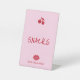 This pedestal sign features a playful “Snacks” design created to coordinate seamlessly with the Girls Gone Mild bachelorette collection. Set against a soft blush pink background, bold cherry red typography makes the sign easy to read while adding a fun, stylish pop of color.