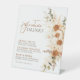 Faites de votre bar de réception un endroit inoubliable grâce à cette enseigne de boissons signature mariage d'aquarelle audacieuse, conçue dans des tons chauds de terre cuite et d'automne. Doté de touches florales vives de roses d'aquarelle, de lys calla, d'herbe de pampas et d'eucalyptus, ce bar moderne est parfait pour des fêtes rustiques, boho ou de jardin. Affichez vos cocktails personnalisés dans une calligraphie élégante avec un design qui allie style et fonction. Placé sur une planche en mousse ou en acrylique, ce panneau de menu à floral-bar aide les clients à trouver leurs boissons préférées tout en attachant votre décoration mariage cohésive. Un détail chic pour les couples qui fêtent l'automne ou avec un thème bohème romantique.