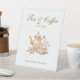 Elegant bridal shower pedestal sign featuring a pastel tea pot and tea cup illustration with gold accents paired with serif and script fonts in which your personalized information is written in. Check out our store for more items from this collection.