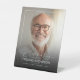 Présentant un panneau de table photo funéraire minimaliste et élégant "In Loving Memory", conçu pour honorer la mémoire de votre être cher avec élégance et grâce. L’effet de fondu doux apporte profondeur et sérénité, contribuant à la beauté sous-jacente du panneau. Ce signe d’accueil du service commémoratif allie simplicité et élégance, créant une façon profonde et éthérée d’honorer la mémoire de votre être aimé.