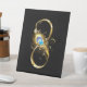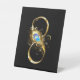 Or, symbole brillant de l'infini, décoré de bijoux plumes paon avec turquoise sur arrière - plan noir.