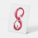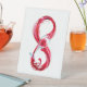Infinity symbole of continuous stream of red pouring into glass glass glass on white background.