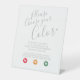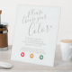 Option de code couleur du mariage de distance sociale et panneau pédagogique. Aidez vos invités les plus vulnérables à rester en sécurité et à l'aise avec ce panneau.Utilisez des badges assortis, des badges de boutons d'épingle, et d'autres panneaux codés en couleur également disponibles. Idéal pour la sécurité des clients lors d'événements et de mariages. Conçu par www.mylittleedenweddings.com