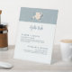 Elevez votre décor mariage avec ce guéridon chic avec les boissons signature de la mariée et du marié. Un petit arrangement de fleurs de cerisiers orne le haut de la carte des boissons, dressé contre un arrière - plan à texture bleu clair.