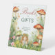 Jardin enchanté fée baby shower cadeaux table signe modèle, un mignon bébé fée dans magie champignons fée thème baby shower décoré table personnalisée