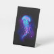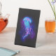 Grande méduse bleue, artistiquement dessinée, brillante, brillante, avec de longues tentacules sur arrière - plan noir avec bioluminescence violette. Méduse brillante.