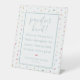 Ce panneau pour un jeu de baby shower présente des pépites colorées encadrées d'un contour bleu et d'une typographie classique et script.