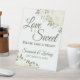 Ce joli panneau de table est parfait pour une table de régal à votre réception de mariage. Il présente un design simple mais élégant avec des lettres de script sophistiquées et de l'ivoire peint à la main, des roses d'aquarelle blanc et crème, des fleurs et de la verdure dans les coins. Le panneau dit : L'amour est doux, s'il vous plaît prenez un régal! Il y a de la place pour vos noms et la date du mariage ci-dessous.