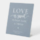 L'AMOUR est une typographie blanche douce et moderne sur un arrière - plan bleu poussiéreux. Les Faveurs De Mariage Signe.