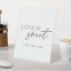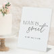 Panneau de table dessert mariage sur mesure avec typographie de style moderne "L'amour est doux" avec texte personnalisé.
