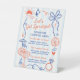 Bring the Dolce Vita to Your Next Soirée! Capture the vibrant spirit of the Amalfi Coast with this adorable "Let's Get Spritzed!" signature cocktail menu sign. Featuring a playful blue and off-white cabana striped pattern and delightful hand-drawn illustrations, this sign adds a touch of whimsical elegance to any bachelorette party, bridal shower or summer wedding celebration. It's the perfect way to display your custom cocktail creations and guide your guests toward the perfect bubbly beverage. The design is adorned with whimsical hand-drawn doodles of Aperol spritzes, lemons, sailboats, and beach umbrellas that transport your guests straight to Positano. The template wording is 100% customizable using the Zazzle design tool so you can easily add your own signature cocktails. Whether you’re sipping spritzers by the Italian seaside or just dreaming of the Mediterranean, this custom bar menu adds that final "spritz" of perfection to your party decor.