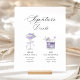 This elegant lavender watercolor signature drinks wedding sign features a refined his & hers cocktail design, created to elevate cocktail hour and bar styling with a soft, romantic touch.