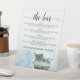 Ce panneau de table est une excellente façon de faire connaître à vos invités le menu du bar à votre réception de mariage. Il présente un design simple mais élégant avec une photo d'un seul rose bleu poussiéreux à longue tige ou bleu poudreux pâle réfléchissant dans un bassin d'eau avec vagues et ondulations. Le titre est écrit en calligraphie de script élégante et dit : The Bar. Il y a de la place pour le menu des boissons ainsi que les noms du couple et de la date du mariage.