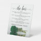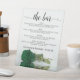 Ce panneau de table est une excellente façon de faire connaître à vos invités le menu du bar à votre réception de mariage. Il présente un design simple mais élégant avec une photo d'un seul rose vert émeraude à long tige réfléchissant dans un bassin d'eau avec vagues et ondulations. Le titre est écrit en calligraphie de script élégante et dit : The Bar. Il y a de la place pour le menu des boissons ainsi que les noms du couple et de la date du mariage.