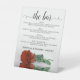 Ce panneau de table est une excellente façon de faire connaître à vos invités le menu du bar à votre réception de mariage. Il présente un design simple mais élégant avec une photo d'un seul rose orange rouille à long tige réfléchissant dans un bassin d'eau avec vagues et ondulations. Le titre est écrit en calligraphie de script élégante et dit : The Bar. Il y a de la place pour le menu des boissons ainsi que les noms du couple et de la date du mariage.