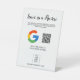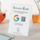 Modern white display sign with QR code and customizable logo area, calling customers to leave you a Google review.