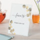 Un panneau de parti moderne, élégant. Arrière - plan blanc, orné d'eucalyptus dorés, sprigs. Texte : faveurs. Prenez-en un !