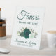 Ce joli panneau de table est conçu pour invitation vos invités à prendre une faveur de mariage. Il présente un design simple mais élégant avec des lettres de script sophistiquées et un ensemble de roses d'aquarelle peints à la main dans les tons vert émeraude, menthe et sauge. Le panneau dit : Faveurs, prenez-en une ! Il y a de la place pour vos noms et la date du mariage ci-dessous.