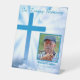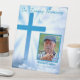 Aidez vos invités à trouver le lieu de la Célébration de la vie, des funérailles, du service commémoratif ou du rassemblement pour votre proche. Une photo est encadrée d'un bleu vif qui brille à travers des nuages blancs autour d'une magnifique croix chrétienne en bleu foncé. Sous la photo se trouvent le nom et les dates de votre proche. Le cadre photo et le texte sont dans le bleu éclatant de la photo. En blanc, en bas à gauche, se trouve un espace pour le nom ou le numéro de la salle/lieu. N'oubliez pas de remplacer la photo, le nom et les dates. Les informations de localisation peuvent être supprimées si elles ne sont pas nécessaires pour votre événement. Cliquez simplement sur "Personnaliser" pour commencer.