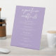 Cette belle signature mariage lilas sigler cocktails guéridon présente une belle typographie blanche sur un arrière - plan mauve doux pour une cérémonie de printemps dans l'après-midi. Boissons pastel de lavande détaillées sur un choix de couleur délicat pour une occasion de jardin élégante.