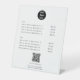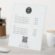Un design moderne de panneau de piédestal d'affaires qui présente votre logo d'entreprise, votre code d'entreprise qr, votre site Web d'affaires et votre poignée de médias sociaux ainsi que des listes de prix. Un code QR personnalisé minimaliste, le logo d'entreprise et les signes d'affaires des médias sociaux. Une façon simple et professionnelle de permettre à vos clients de scanner, payer, visualiser les menus, les listes de prix, etc. Customisez le texte et faites-le vous-même.