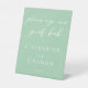 Ce mariage vert menthe doux S'IL VOUS PLAÎT SIGNER NOTRE GUEST LIVRE pedestal présente une typographie blanche chic pour une cérémonie de printemps en plein air. Ecriture simple et élégante sur de solides panneaux vert pastel tranquilles pour une réception jardin.