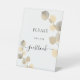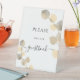 Fond blanc. Décoré de tiges d'eucalyptus dorées à l'eau. Avec le texte : Veuillez signer notre livre d'or