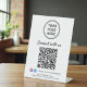 Facilitez à vos clients la tâche de suivre, de se connecter et d'interagir avec votre marque en utilisant ce panneau de pied de table personnalisé avec un code QR « Connectez-vous avec nous ». Conçu avec un fond blanc épuré, une typographie moderne, un espace pour votre logo et vos identifiants de réseaux sociaux Facebook et Instagram, ce panneau de table professionnel crée un moyen invitant et sans contact pour que les clients accèdent à votre entreprise en ligne. Zazzle génère automatiquement le code QR à partir du site web ou du lien que vous fournissez, garantissant une configuration fluide et une expérience de numérisation fiable. Le code QR visible permet aux visiteurs d'accéder instantanément à votre site web, à vos réseaux sociaux, à votre menu, à vos services ou à votre page de réservation en un seul scan - sans avoir à taper. Les icônes de réseaux sociaux et votre identifiant aident à augmenter vos abonnés tout en renforçant la reconnaissance de la marque au point d'interaction. Parfait pour les comptoirs de vente au détail, les salons, les cafés, les restaurants, les cliniques,
