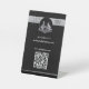 Ce design intègre un logo plat minimaliste dans une finition métallique en acier, incarnant les principes de l'architecture et du design d'intérieur. Le nom du designer ou de l'entreprise est élégamment présenté dans une police de caractères de script moderne, projetant une identité de marque chic et sophistiquée. Les informations essentielles sont transmises à l'aide d'une délicate police minimaliste. Ils sont présentés sur une bande métallique en haut. La fonctionnalité est améliorée en bas avec un code QR personnalisable, permettant un accès direct à une destination en ligne spécifiée (comme un site Web, un compte Instagram ou un portefeuille).