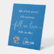 Voici notre panneau de comptoir sur mesure, conçu spécialement pour les agents immobiliers. "Regardez autour de vous. Posez des questions. Tombe amoureuse ! Faites une offre. Montré dans une palette classique bleu et blanc avec une police de script moderne pour "tomber amoureux", bien que toutes les couleurs soient modifiables pour correspondre à votre marque. Personnalisez le modèle avec votre code QR et votre logo d'entreprise. © Kimbellished, LLC