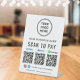Un simple panneau de piédestal de table moderne pour votre entreprise avec les codes QR Venmo, Paypal et CashApp pour que les clients scannent pour les paiements. Ajoutez votre logo, vos codes QR, le nom de votre entreprise, votre numéro de téléphone et votre site web dans une typographie simple. Ajoutez vos identifiants Instagram et Facebook pour que les clients vous suivent sur les réseaux sociaux.