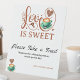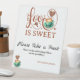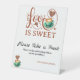 love is sweet wedding tabletop signs bridal shower elegant heart script, Coffee Theme for Bride-to-Be, Warm hearts and mugs with this adorable “Love Is sweet” bridal shower sign, perfect for coffee lovers and cozy celebrations! Featuring elegant coffee-themed illustrations, including latte art, heart shapes, and soft typography, this invite sets the tone for a heartfelt and caffeinated get-together. Designed in trendy terracotta and mocha tones, this pedestal sign complements fall, winter, or neutral wedding décor beautifully. The clean layout and romantic script make it an eye-catching detail for your sweets table while tying in perfectly with a coffee themed event such as Love Is Brewing or brunch-style bridal showers.