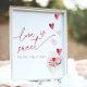 "Love is sweet , please take a treat" sign with hearts and flowers for a Valentines Day themed Bridal Shower: