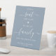 Choisissez un siège, pas un côté. Nous sommes tous Famille une fois le noeud noué ! Calligraphie simple mais élégante, ce panneau mariage de bienvenue dispose d'élégantes calligraphies en bleu poussiéreux moderne. Customisez ce panneau de mariage élégant avec vos noms et votre date!