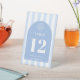 Poursuivez votre recherche de fraîcheur et de modernité dans la décoration mariage sur le thème de la côte avec ces numéros de table design. Dotés d'une palette de couleurs bleu et blanc et d'images océaniques, ces panneaux de piédestal de numéro de tableau amélioreraient tout événement d'inspiration côtière. Toutes les couleurs (y compris l'arc, le coquillage et tout le texte) peuvent être customisées par vous, comme toutes les couleurs et les placements de texte, de l'intérieur de l'outil de conception. Vous pouvez également ajouter ou supprimer des zones de texte dans l'outil de conception.