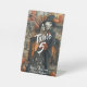 Numéro de table de mariage d'Halloween avec un mignon couple de squelettes habillés de leurs plus beaux vêtements. La mariée porte une robe noire avec des images de crânes dessus et a des citrouilles dans les cheveux. Le marié porte un costume noir et un chapeau haut de forme pointu. Il y a de grosses araignées noires qui rampent autour tandis qu'une chauve-souris est suspendue à la cheminée. Carte de piédestal de table gothique qui peut être personnalisée pour répondre à vos besoins.