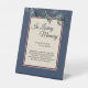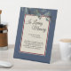 Ce mariage Pine Blue Winter en mémoire d'amour signe de piédestal combine une bordure élégante et formelle bleue encadrée de bleu et d'élégantes pignons à feuillage persistant de pin pour un look classique, mais rustique. Le feuillage botanique de verdure avec type calligraphie sur un arrière - plan beige crée une ambiance naturelle pour une célébration de Noël ou de mariage en forêt.