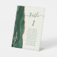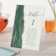 Le bord gauche de ce socle mariage moderne et élégant comporte une bordure en aquarelle vert émeraude et une parties scintillant en faux or. Le mot "table" apparaît dans un script d'écriture manuscrite blanc sur un arrière - plan ivoire. Ajoutez les noms de vos invités qui sont affectés à chaque table.