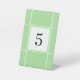 Ce panneau de table simple et élégant présente des carrés verts et un centre blanc pour numéro.