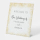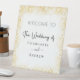 Un arrière - plan blanc, décoré de parties scintillant faux or scintille. Avec le texte : Bienvenue au Mariage de. Personnalisez et ajoutez vos noms.