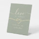Élevez votre décoration de mariage avec ce panneau calligraphique moderne minimaliste élégant en vert sauge, présentant la douce phrase "L'amour est doux, s'il vous plaît prenez une friandise". Accentué d'un cœur de corde dorée romantique, il ajoute une touche de sophistication à votre table, invitant les invités à se régaler de vos délicieuses friandises. Parfait pour une célébration charmante et élégante !