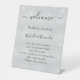 Ce panneau est parfait pour célébrer votre journée spéciale, et souhaiter la bienvenue à vos invités. Le panneau a un arrière - plan de couleur argent faux élégant avec une police de script de style manuscrit moderne noir pour les noms. Personnalisez et ajoutez vos noms et votre calendrier de mariage.