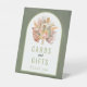 Feuilles de palmier séchées tropicales, fleurs de protéa et herbe de pampas vert sauge arche cartes botaniques et cadeaux de mariage Panneau de socle. Cette belle conception de mariage comporte un cadre d'arche sur fond vert taché. Dans le cadre, il y a votre texte, un bouquet de feuilles de palmier séchées, de fleurs de protéa et d'herbe de pampa.